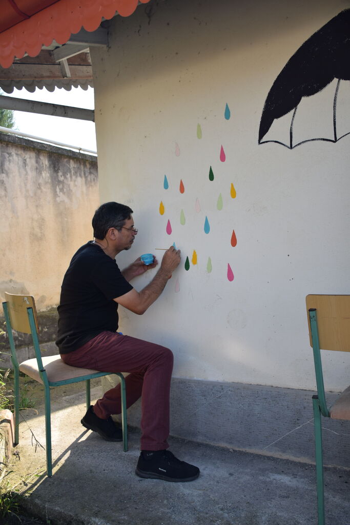 ما در استان گیلان/ حوالی شهر رستم آباد/ روستاهای حلیمهجان/ شهربیجار/ اسکلک/ رشتهرود در استان یزد و در استان تهران در ۳ مدرسه/ در حاشیه شهر/ و دو مرکز حمایت از کودکان بهزیستی/ یک مرکز حمایت از کودکان کار، کار نقاشی دیواری انجام دادیم.