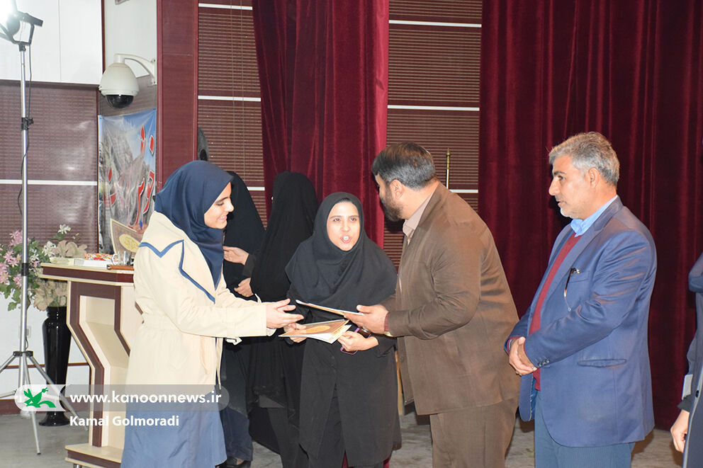 در پایان این برنامه از کودکان و نوجوانان برتر عضو مرکز فرهنگی هنری کانون پرورش فکری کودکان و نوجوان پلدختر با اهدای هدایایی تجلیل شد.