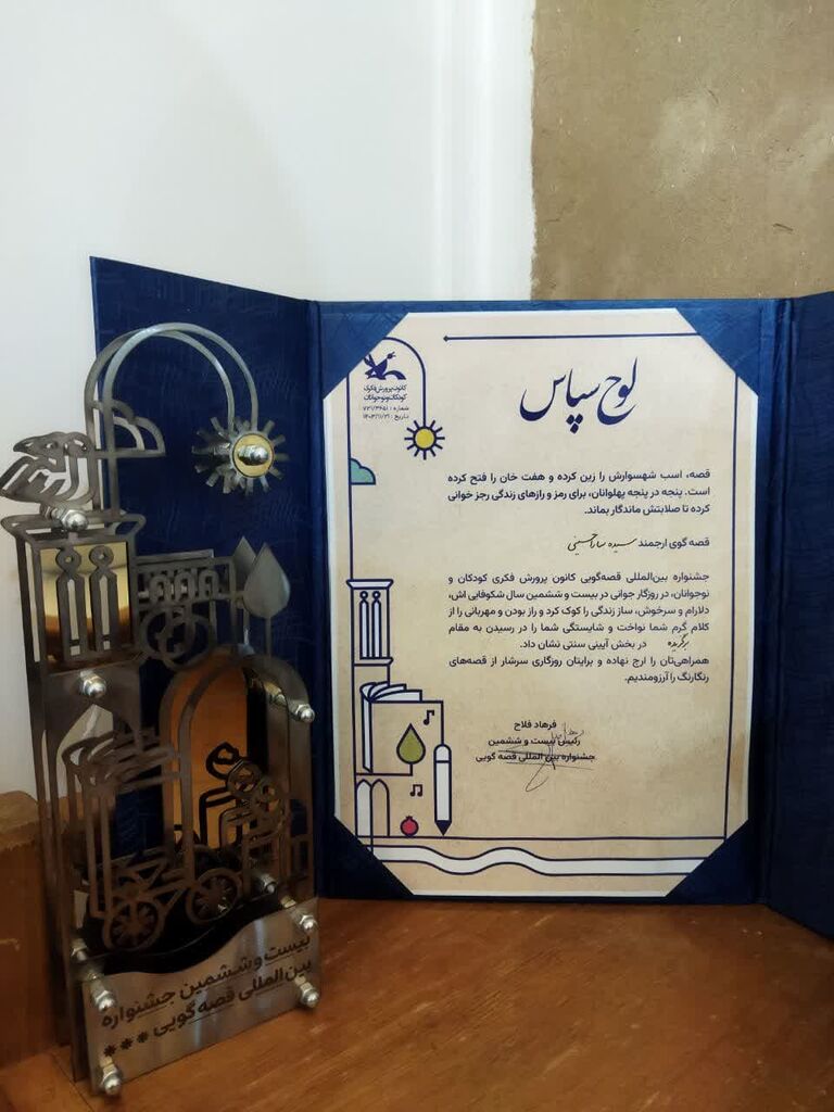 سید سارا حسینی از کانون همدان موفق به کسب رتبه اول بیست و ششمین جشنواره قصه‌گویی در بخش آئینی- سنتی بزرگسالان شد و برای استان همدان افتخار آفرید.