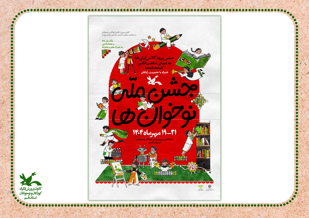 جشن ملی نوخوانها با عنوان جشن ورود کلاس اولیها به دنیای شگفت انگیز کتابخانهها از ۱۹ تا ۲۱ مهر ۱۴۰۴ در مراکز فرهنگی هنری کانون پرورش فکری کودکان و نوجوانان سراسر کشور برپا خواهد شد.