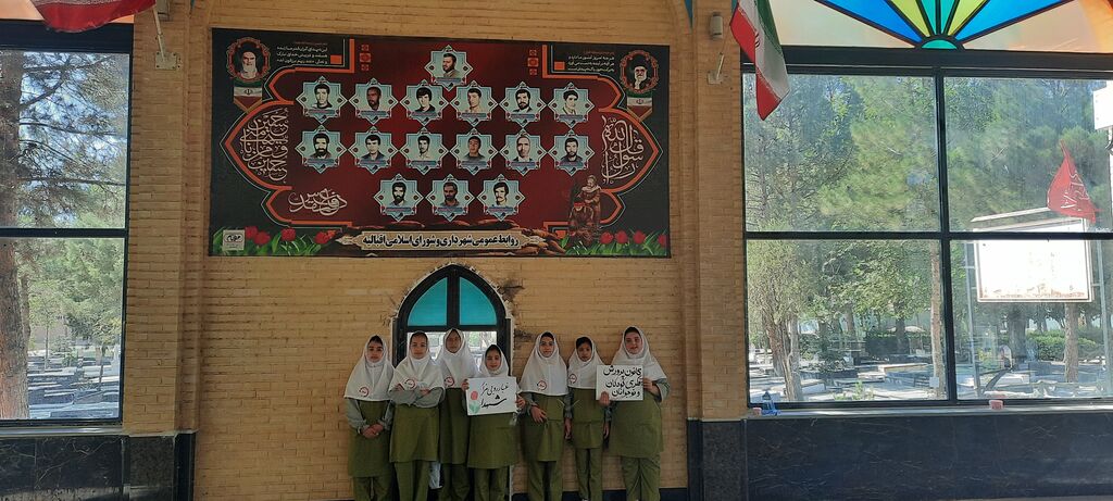 مربیان مرکز فرهنگی و هنری کانون اقبالیه همراه با اعضای نوجوان دختر با حضور در گلزار شهدا، با غبارروبی مزار شهدا و اجرای سرود "ای ایران" به شهدای دفاع مقدس و مدافع حرم ادای احترام کردند.