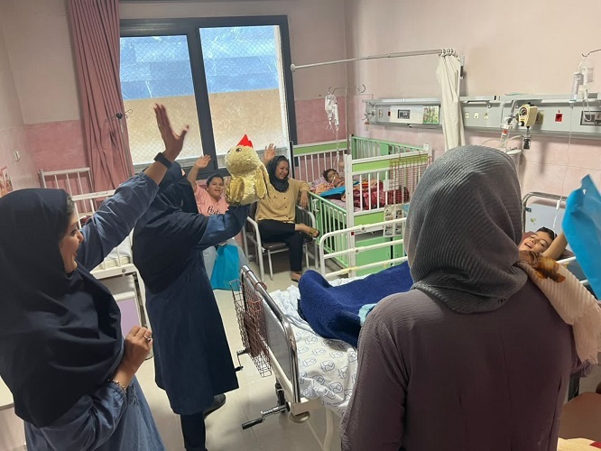 این برنامه که به مناسبت روز کودک و قصه با هدف ایجاد نشاط برای کودکان بیمار برگزار شد، گلواژههای لبخند را بر لبان بچهها نشاند و لحضات شاد و مفرحی را ارزانی آنها نمود.