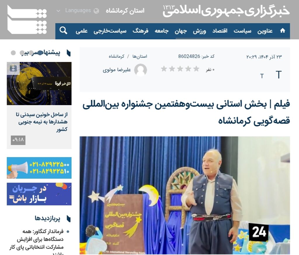 مرحله استانی بیستوهفتمین جشنواره بینالمللی قصهگویی کانون پرورش فکری کودکان و نوجوانان کرمانشاه، با رقابت بیش از ۱۰۰قصهگو از سراسر استان به مدت ۴روز از ۲۳ تا ۲۶ آذر ماه و با حضور داورانی بنام از ایلام، لرستان و کرمانشاه، در حال برگزاری است.