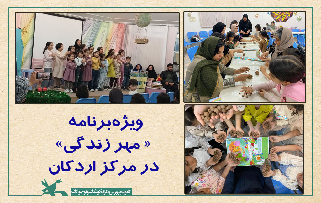 به همت مرکز فرهنگی‌هنری کانون پرورش فکری کودکان و نوجوانان شهرستان اردکان، ویژه‌برنامه «مهر زندگی» با حضور ۵۰ کودک و ۴۵ مادر برگزار شد.