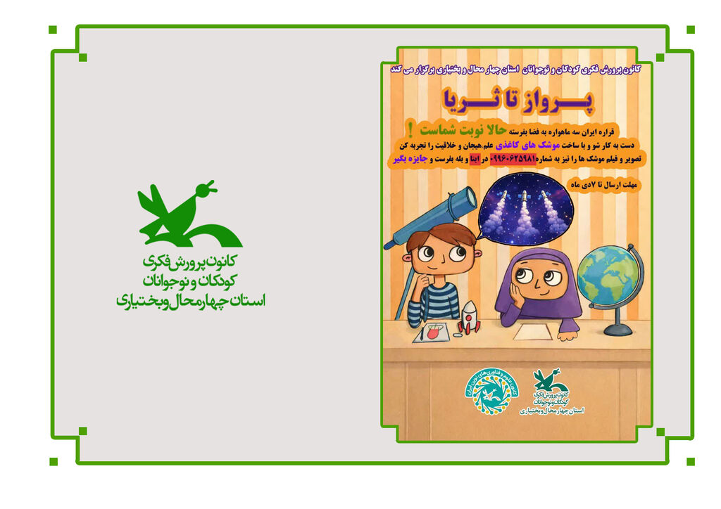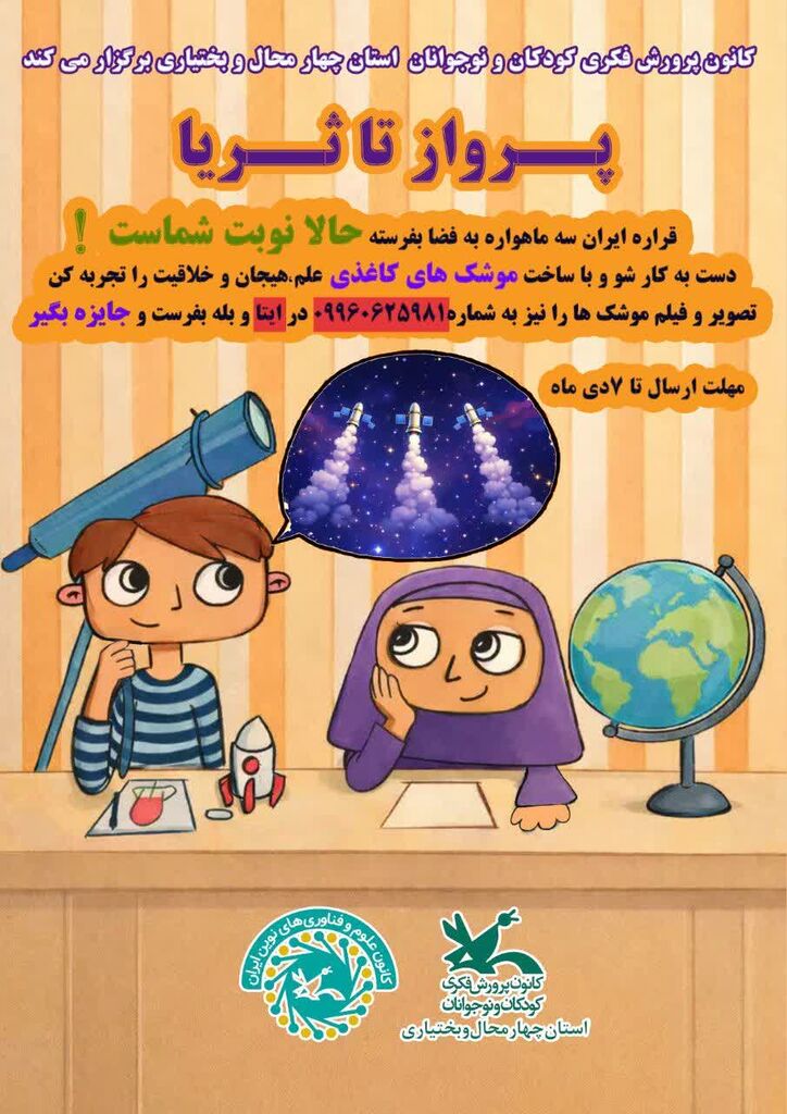 کانون پرورش فکری کودکان و نوجوانان چهارمحال و بختیاری هم‌زمان با پرتاب سه ماهواره ایرانی، پویش ساخت «موشک کاغذی» را با هدف ترویج علم، خلاقیت و امید به آینده در میان کودکان و نوجوانان آغاز کرد.