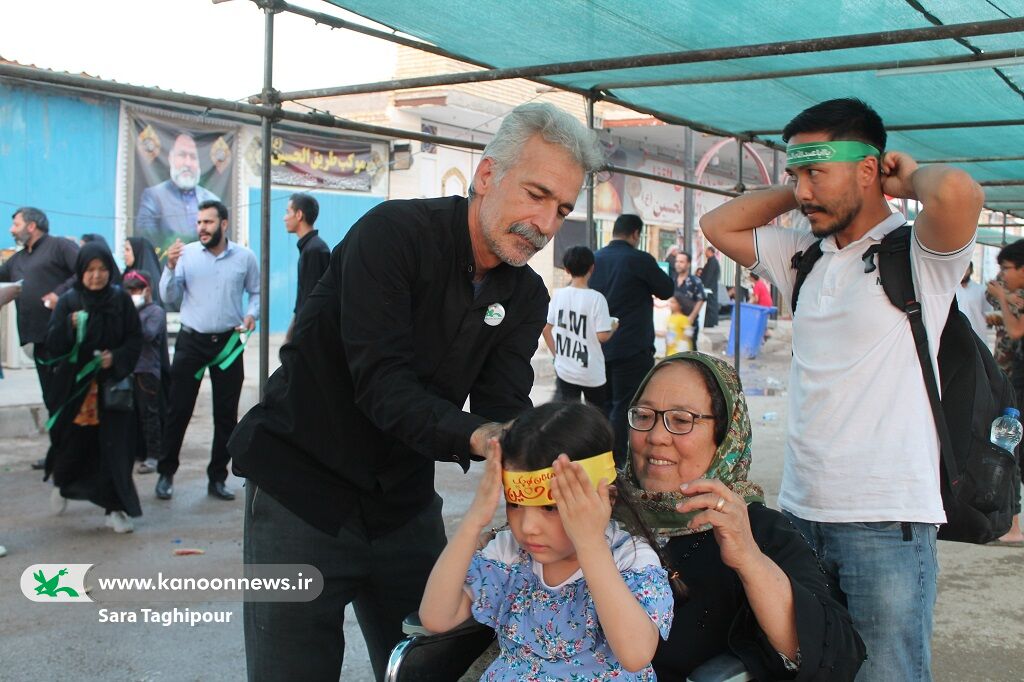 در هفتمین روز از فعالیت تماشاخانه سیار کانون پرورش فکری کودکان و نوجوانان در مرز چذابه، همزمان با اجرای برنامه های متنوع مربیان کانون خوزستان، به میهمانان کوچک امام حسین(ع)، پیشانی بند و پیکسل نیز اهدا شد.