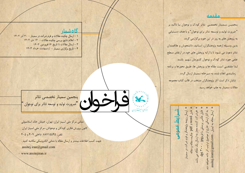 فراخوان پنجمین سمینار تخصصی تئاتر کودک و نوجوان مرکز ملی اسیتژ (سازمان بین‌المللی تئاتر برای کودکان و نوجوانان) منتشر شد.