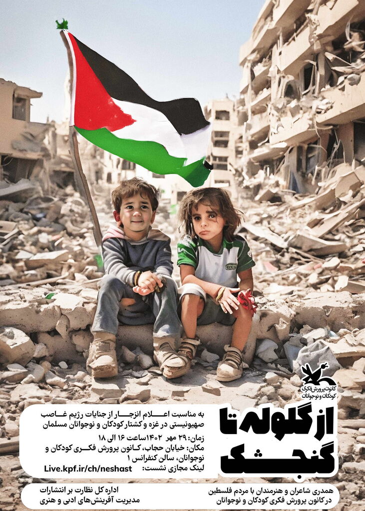 شب شعر «از گلوله تـا گنجشک» ساعت ۱۶ تا ۱۸ روز شنبه ۲۹ مهر در سالن کنفرانس شماره یک مرکز آفرینشهای فرهنگی هنری کانون پرورش فکری کودکان و نوجوانان واقع در خیابان حجاب تهران برگزار میشود.