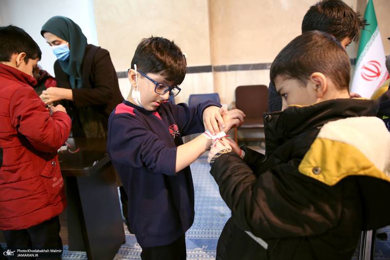 در پایان دانش آموزان و سایر بازدیدکنندگان به طبقه بالای حسینیه راهنمایی شدند و با راهنمایی آرزو جیرودی مربی فرهنگی استان، مچ بندهای پارچه ای با نماد پرچم و شعارهایی در قالب وطن و کشور ایران ساختند و به دستهایشان بستند.