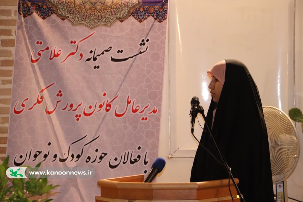 او با بیان سخنان مقام معظم رهبری مبنی بر اهمیت توجه به تقویت هویت ملی، عشق به میهن، پرچم ملی و سبک زندگی ایرانی و اسلامی اظهار داشت: آن کسی میتواند از کار خود خشنود و از رضای الهی خاطرجمع باشد که خلأِ لحظه را پر کند؛ کار برای کودکان و نوجوانان در حقیقت برای آینده، برای خانوادهها، برای کشور و تاریخ است.