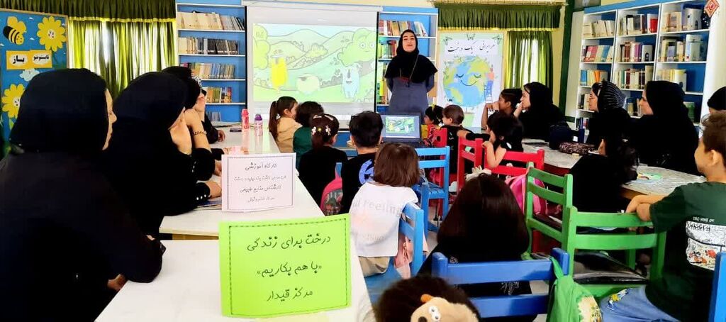 در بخش بعدی برنامه اعضا چند نمونه از نمایش فیلم با موضوع حفاظت از درختان و محیط زیست را مشاهده و سپس در کارگاه کاردستی ساخت درخت زندگی با کمک و همراهی مادران شرکت کردند.