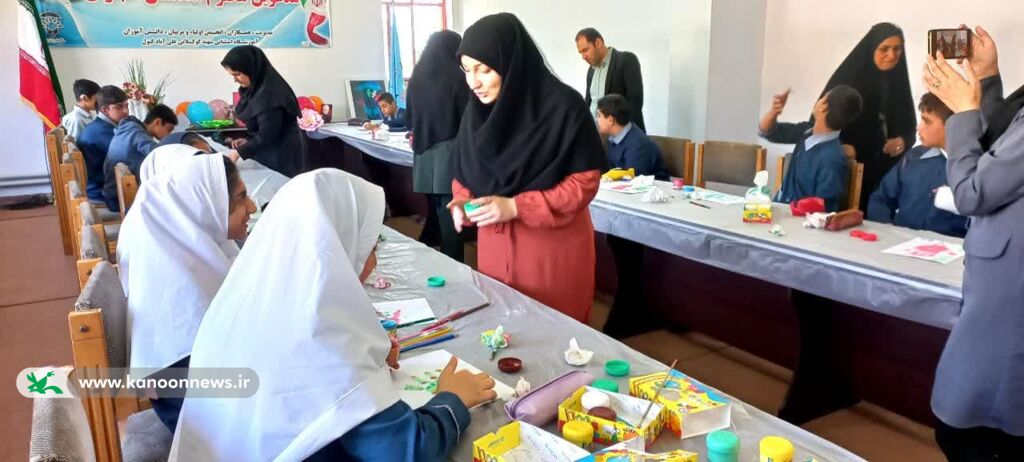 برگزاری کارگاه نقاشی از جمله برنامههای پیش بینی شده در این دبستان بود که توضیحات مربیان کانون پرورش فکری کودکان و نوجوانان توسط معلم ترجمه با زبان اشاره برای کودکان ناشنوا بازگو شد.