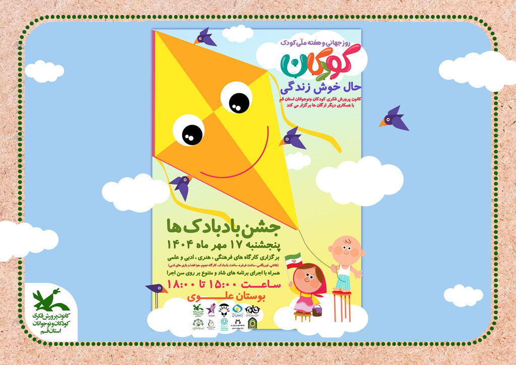 در آستانهی هفته ملی کودک و همزمان با پنجشنبه ۱۷ مهرماه روز «زندگی، بازی، سلامت»، جشن بزرگ و شاد «بادبادکها» با حضور مدیرکل کانون پرورش فکری و جمعی از مسئولان استانی در بوستان علوی قم برگزار میشود؛ جشنی سرشار از رنگ، بازی و خلاقیت که کودکان و خانوادهها را با برنامههای فرهنگی، هنری، ادبی وعلمی گرد هم میآورد.