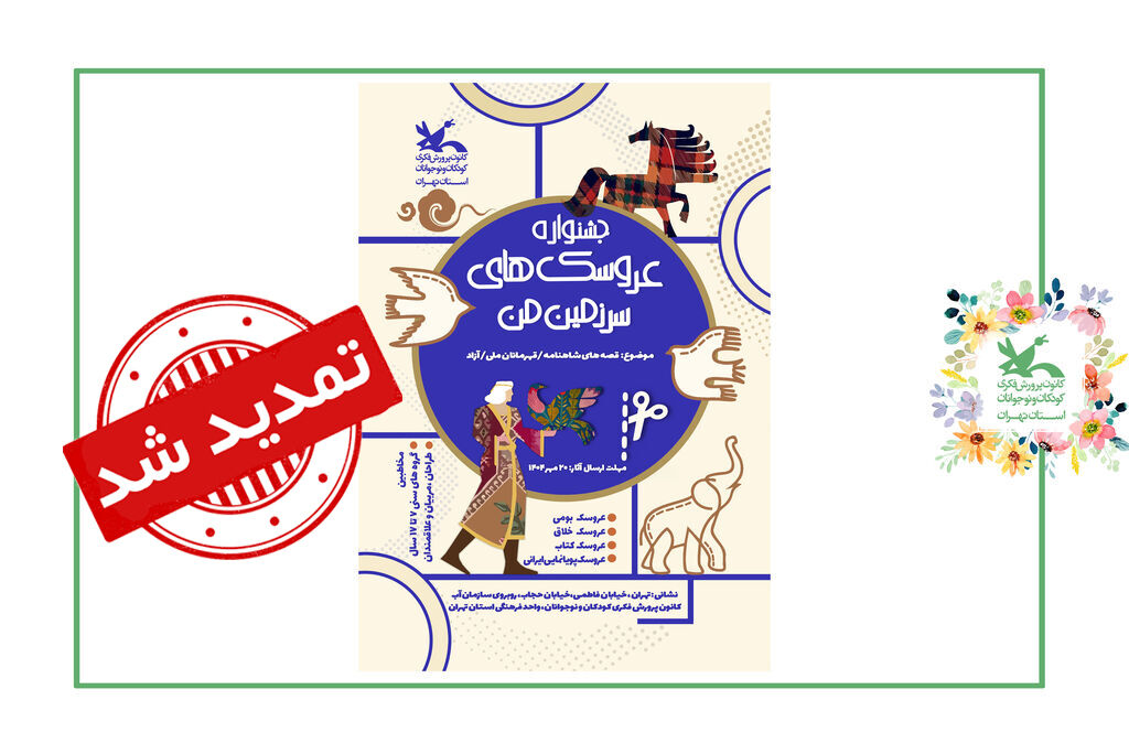 به گزارش روابط عمومی اداره کل کانون پرورذش فکری کودکان و نوجوانان استان تهران، شرکت در جشنواره  ملی " عروسک سرزمین من"  تا تاریخ ۳۰ مهـر ماه ۱۴۰۴ تمـدید شد.