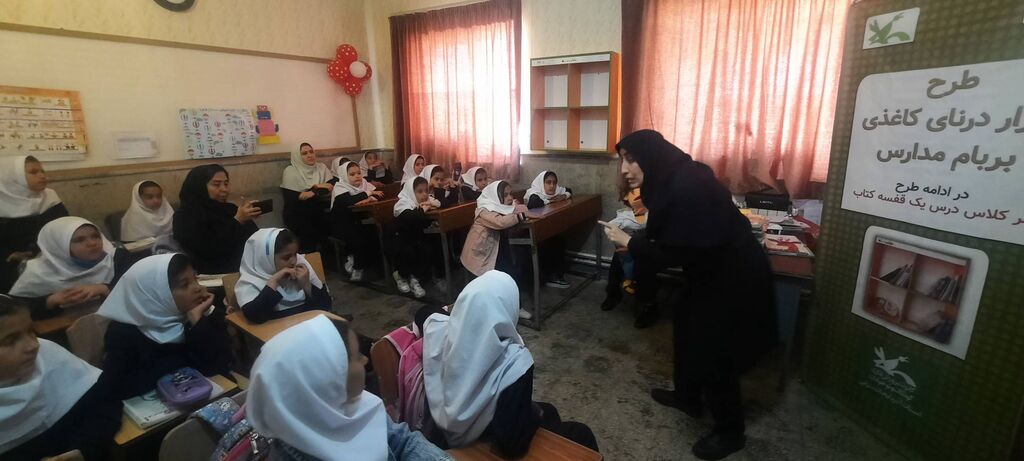 قصه گویی، خوانش کتاب، مسابقه، نصب قفسه کتاب و نمایش عروسکی با موضوع اهمیت و تشویق کودکان به کتابخوانی، از جمله برنامه هایی بود که همزمان با طرح ملی"هزار درنای کاغذی بر بام مدارس" اجرا و با استقبال دانش آموزان همراه شد.