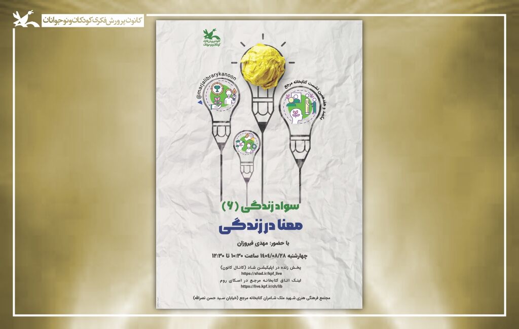 یکصد و هفدهمین نشست تخصصی کتابخانه مرجع کانون پرورش فکری کودکان و نوجوانان با موضوع «سواد زندگی ۶؛ معنا در زندگی» برگزار می‌شود.