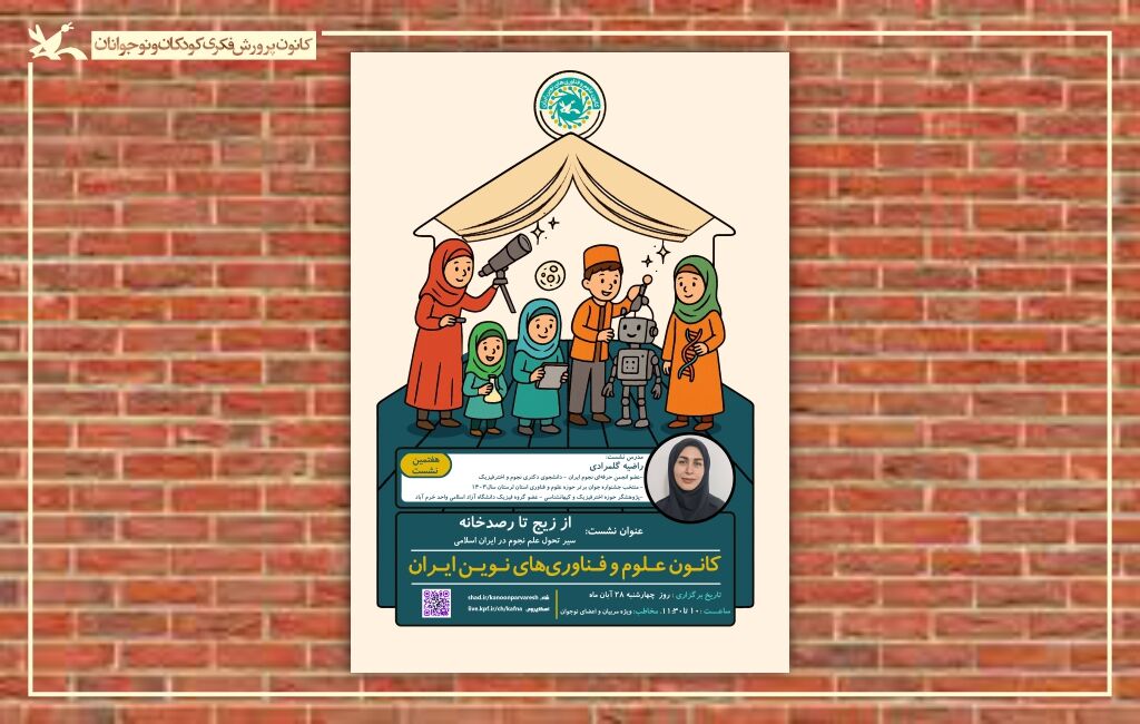 به گزارش اداره کل روابط عمومی و امور بینالملل کانون، این نشست ساعت ۱۰ تا ۱۱:۳۰ روز چهارشنبه ۲۸ آبان ۱۴۰۴ با مشارکت کانون علوم و فناوریهای نوین ایران و کانون پرورش فکری استان لرستان برگزار میشود.