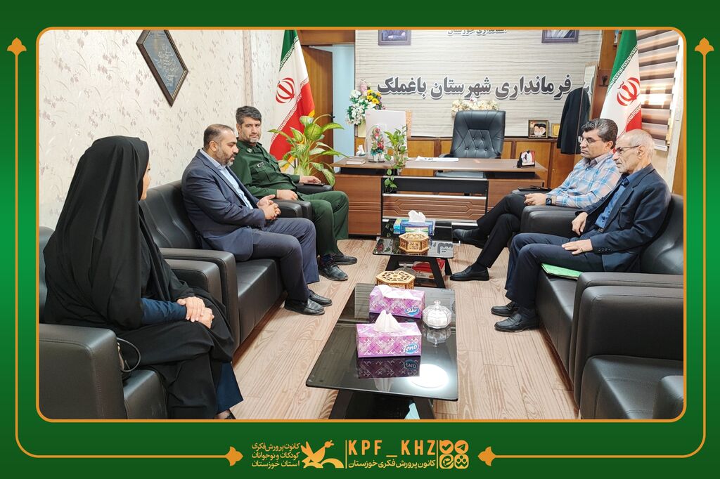 در ادامه نشست، خسروی فرماندار باغملک با تقدیر از فعالیتهای فرهنگی و هنری کانون پرورش فکری در خدمترسانی به کودکان و نوجوانان این شهرستان، بر نقش مؤثر این مرکز در پرورش استعدادها و ارتقای سطح فرهنگی باغملک تأکید کرد.