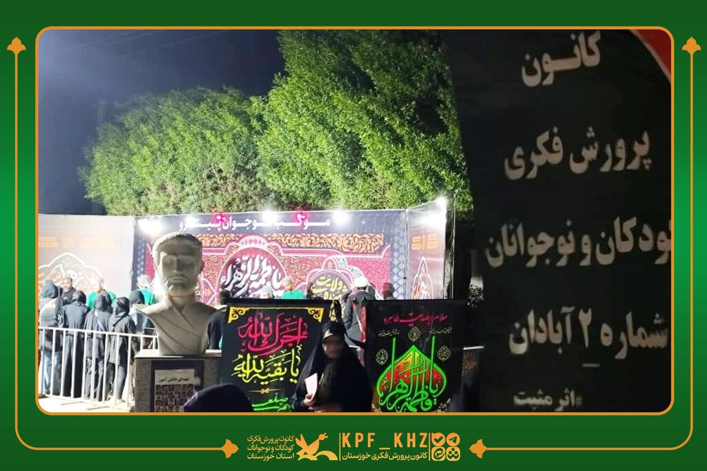 به گزارش روابطعمومی ادارهکل کانون پرورش فکری خوزستان، همزمان با ایام شهادت حضرت فاطمهزهرا(س)، موکب فرهنگی، هنری و پذیرایی مرکز فرهنگیهنری شماره دو کانون پرورش فکری کودکان و نوجوانان آبادان برپا شد.