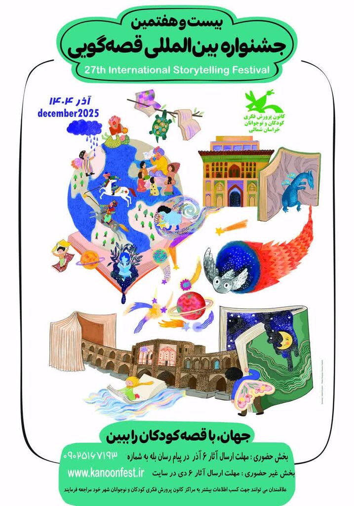 همه علاقه مندان، نویسندگان، قصهگویان و نوجوانان قصهدوست دعوتند تا در مرحله استانی بیستوهفتمین جشنواره بینالمللی قصهگویی دیماه ۱۴۰۴ بدرخشند؛ ثبتنام تا 6 آذر در www.kanoonfest.ir ـ جایی که قصهها آغاز میشوند و صداها شنیده میشود.