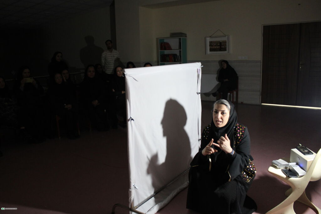 وی خطاب به مربیان بیان کرد: برای اجرای کار نمایشی شما مربیان کانون باید همیشه یک منبع نور تک جهته، ثابت و نزدیک به زمین داشته باشید تا سایه‌ها واضح و یکدست باشد؛  باید از یک پرده سفید و نیمه شفاف مثل چلوار استفاده کنید.