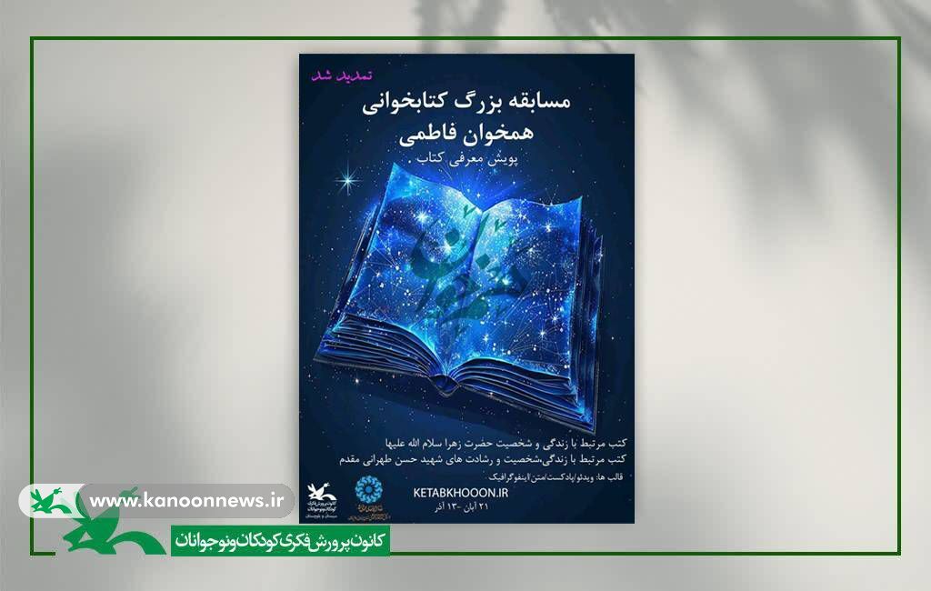 به گزارش روابط عمومی ادارهکل کانون سیستان و بلوچستان، مهلت شرکت در مسابقه بزرگ کتابخوانی «همخوان فاطمی» تمدید شد.