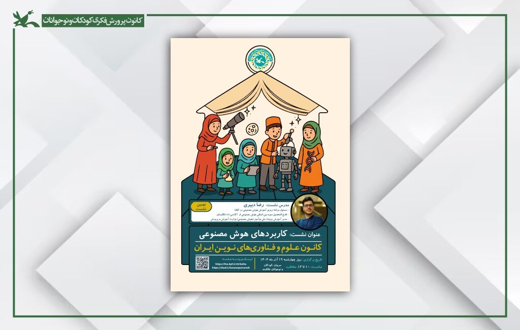 به گزارش اداره‌کل روابط عمومی و امور بین‌الملل کانون، این نشست در امتداد برنامه‌های علمی و آموزشی کانون پرورش فکری کودکان و نوجوانان، با همکاری کانون علوم و فناوری‌های نوین ایران روز چهارشنبه ۱۹ آذر ۱۴۰۴ از ساعت ۱۰ تا ۱۲ برگزار می‌شود.