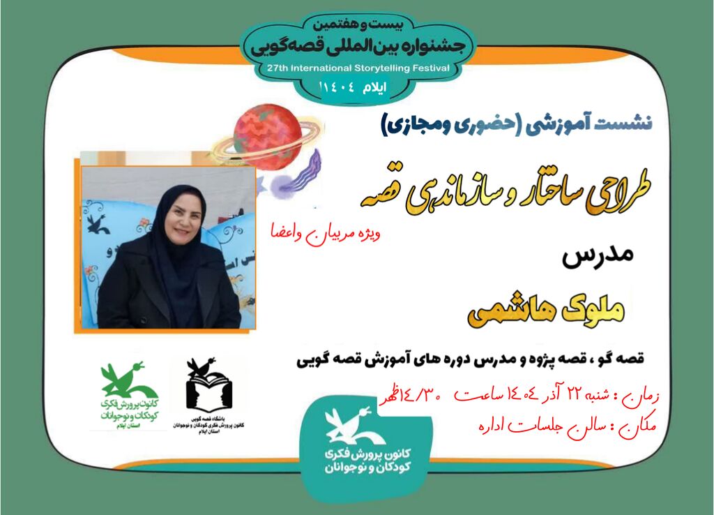 ملوک هاشمی درنشست آموزشی قصه‌گویی در کانون استان ایلام از ساختار و سازماندهی گفت .