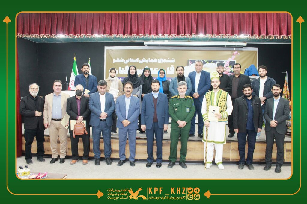 در ششمین دوره همایش شعر «قاب عکس آفتاب»، شاعران برتر استان خوزستان به شعرخوانی پرداختند و اشعار خود را در وصف شخصیت، مجاهدتها و مکتب سردار دلها، شهید حاج قاسم سلیمانی ارائه کردند. همچنین حضور و شعرخوانی شاعران نوجوان عضو کانون پرورش فکری کودکان و نوجوانان خوزستان، جلوهای ویژه به این رویداد فرهنگی بخشید.