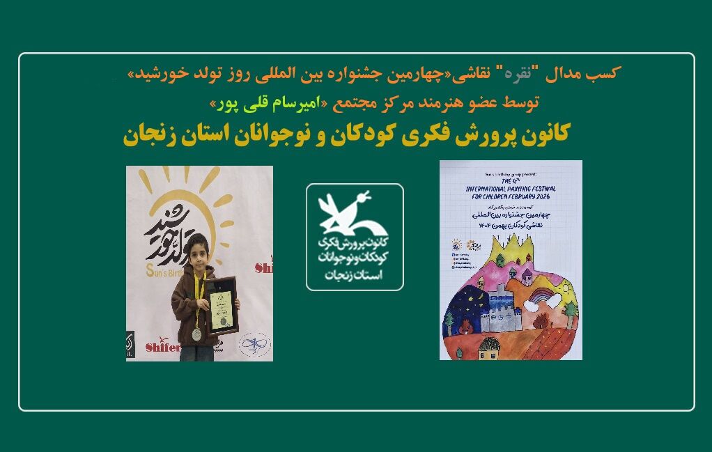 امیرسام قلی‌پور، عضو هنرمند مرکز فرهنگی‌هنری مجتمع زنجان، با درخشش در چهارمین جشنواره بین‌المللی «روز تولد خورشید» موفق به کسب مدال نقره در رشته نقاشی شد و بار دیگر نام زنجان را در سطح بین‌المللی مطرح کرد.