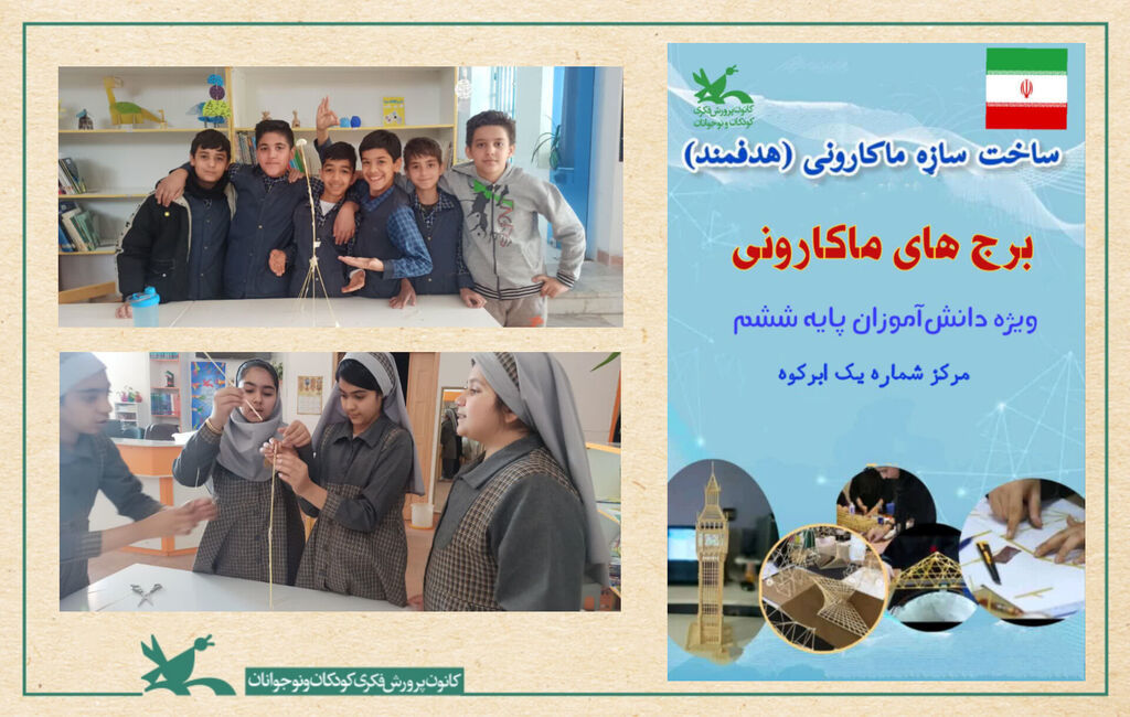 به گزارش روابط عمومی کانون پرورش فکری کودکان و نوجوانان استان یزد، مسابقات سازه‌های ماکارونی «برج ماکارونی» با حضور ۱۲۰ دانش‌آموز پایه ششم دبستان‌های دخترانه و پسرانه در مرکز شماره یک ابرکوه طی سه روز برگزار شد.
