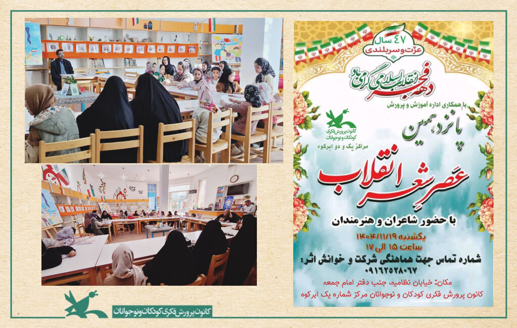 این برنامه به همت کانون پرورش فکری کودکان و نوجوانان و با همکاری اداره آموزش و پرورش ابرکوه و با هدف توجه به شعر و داستان کودک و نوجوان و معرفی مفاهیم انقلاب و ارزشهای آن برای نسل نو اجرا شد.