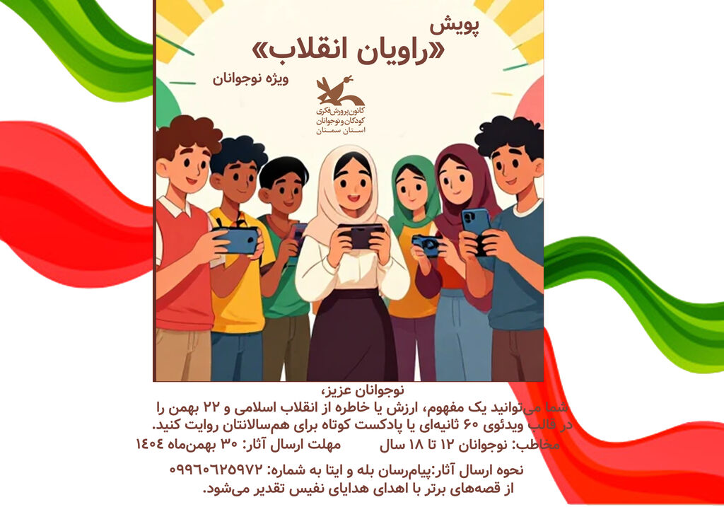 کانون پرورش فکری کودکان و نوجوانان استان سمنان به‌منظور تربیت روایت‌گران جوان و تمرین مهارت‌های روایتگری رسانه‌ای، پویش «راویان انقلاب» را ویژه نوجوانان ۱۲ تا ۱۸ ساله راه‌اندازی کرده است که در آن نوجوانان می‌توانند روایت‌های خود را از مفاهیم و وقایع انقلاب اسلامی و ۲۲ بهمن به‌صورت ویدئو یا پادکست ارائه دهند.