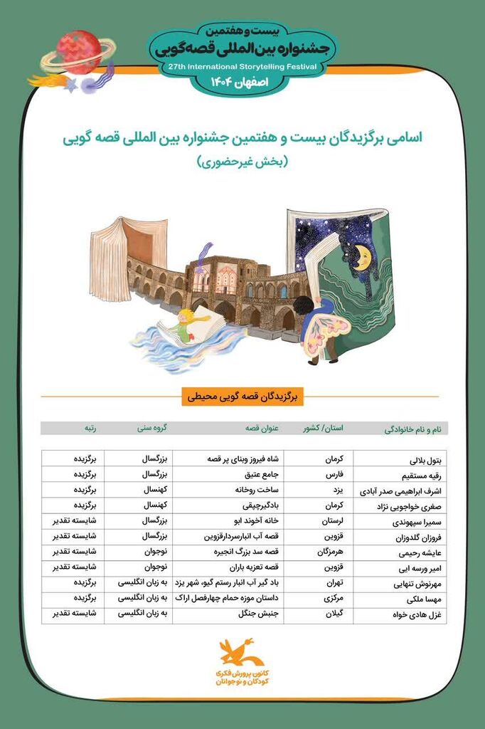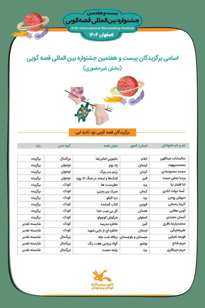 برگزیدگان بخش غیرحضوری(قصههای محیطی) بیست و هفتمین جشنواره بینالمللی قصهگویی