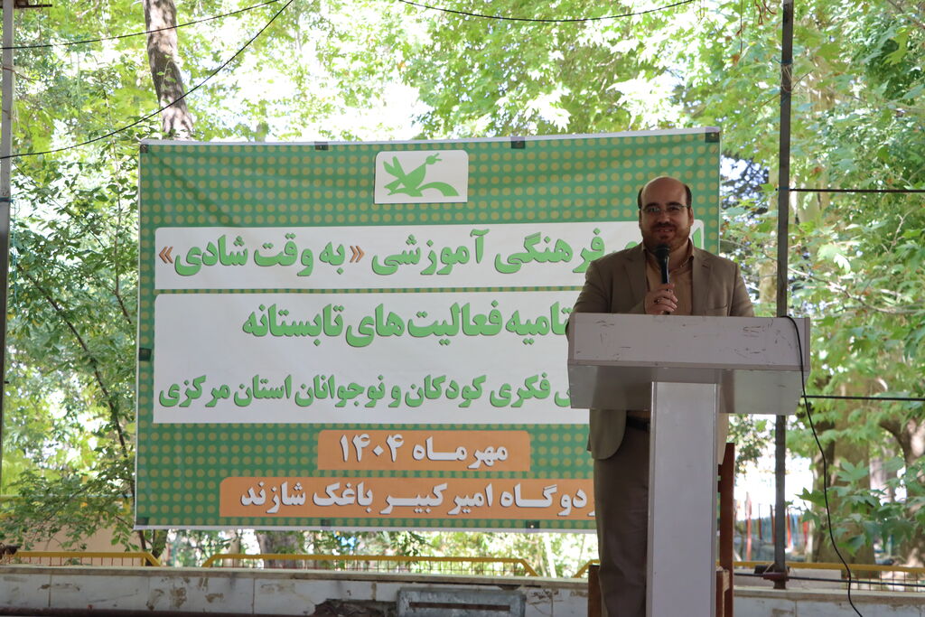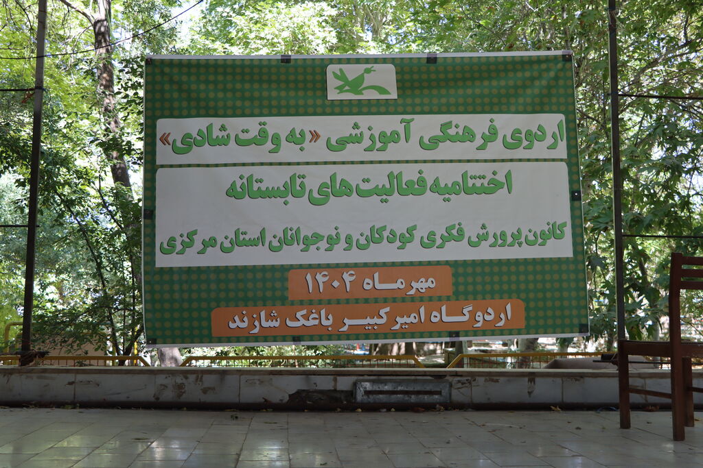 اختتامیه فعالیت های تابستانه مراکز فرهنگی هنری کانون در اردوی فرهنگی آموزشی «به وقت شادی» با حضور کلیه مدیرکل معاونین، کارشناسان ، کارکنان مسئولین و مربیان کانون پرورش فکری کودکان و نوجوانان استان مرکزی در اردوگاه امیرکبیر "باغک شازند" ۹ مهرماه ۱۴۰۴ برگزار شد.