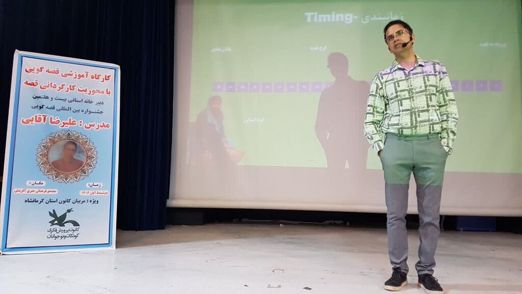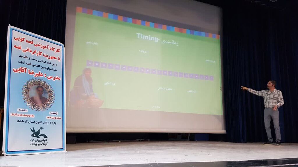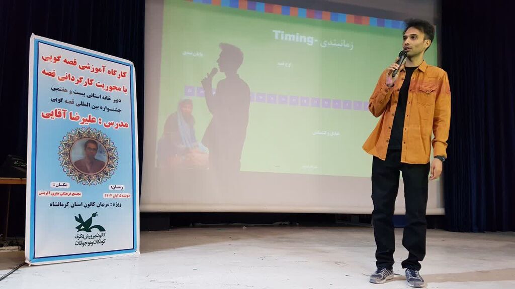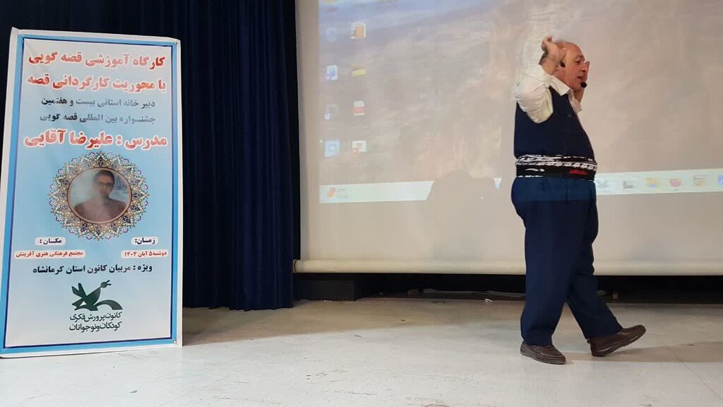 کارگاه تخصصی «کارگردانی در قصه‌گویی» به همت دبیرخانه استانی بیست‌وهفتمین جشنواره بین‌المللی قصه‌گویی، روز دوشنبه پنجم آبان‌ماه در مجتمع فرهنگی هنری آفرینش کرمانشاه برگزار شد. در این کارگاه آموزشی که با هدف ارتقای مهارت‌های حرفه‌ای مربیان برگزار گردید، علیرضا آقایی، مدرس و داور بین‌المللی، به تبیین اصول کارگردانی قصه و ارائه نکات لازم در خصوص قصه‌گویی پرداخت.