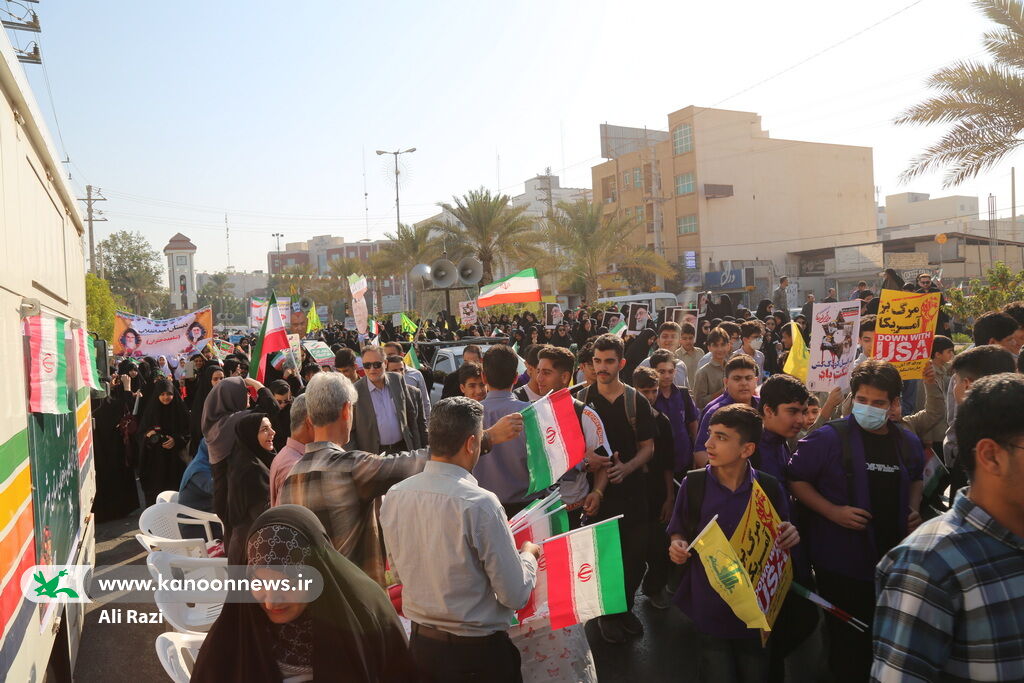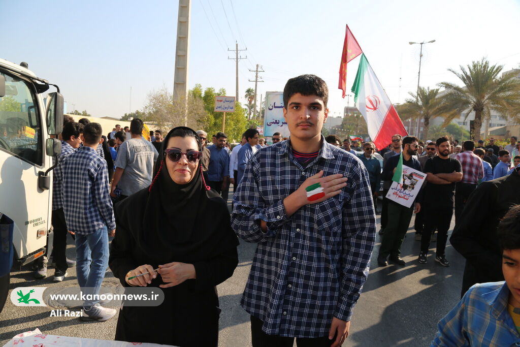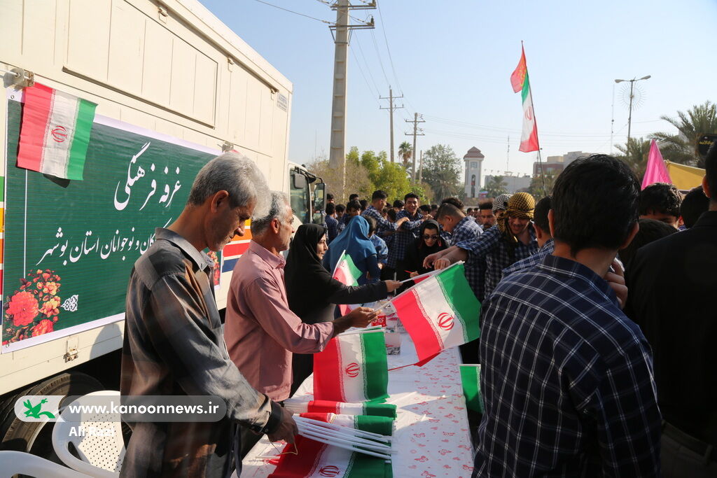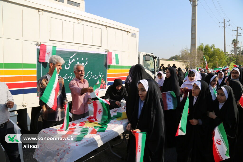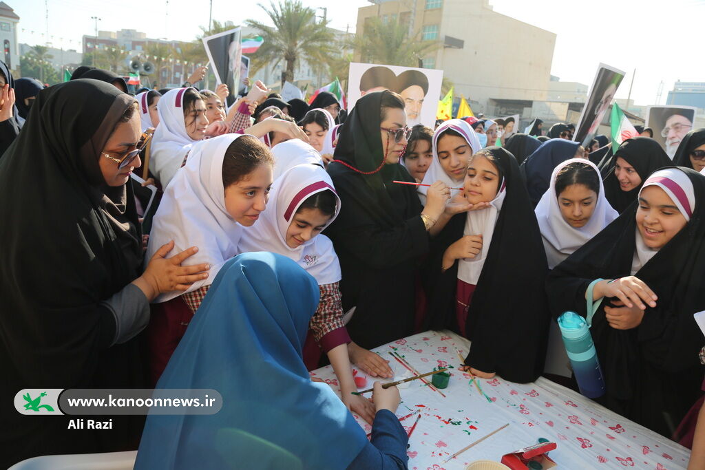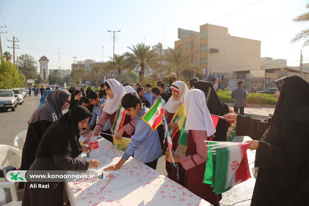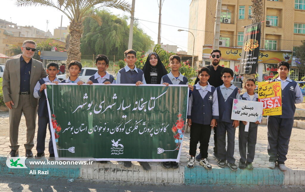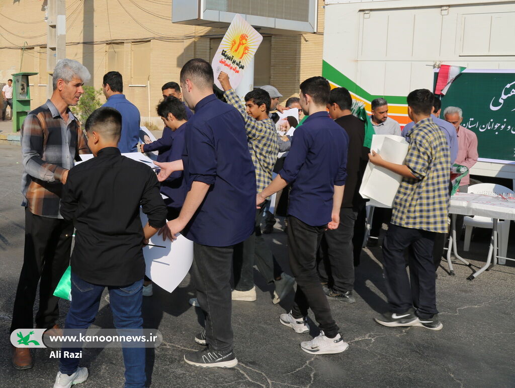 همزمان با فرارسیدن یومالله ۱۳ آبان، روز دانشآموز و روز مبارزه با استکبار جهانی، مربیان و کارکنان کانون پرورش فکری کودکان و نوجوانان استان بوشهر با برپایی غرفه فرهنگی و هنری در مسیر راهپیمایی، جلوهای از حضور پرشور و خلاقانهی را به نمایش گذاشتند.