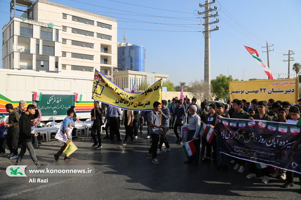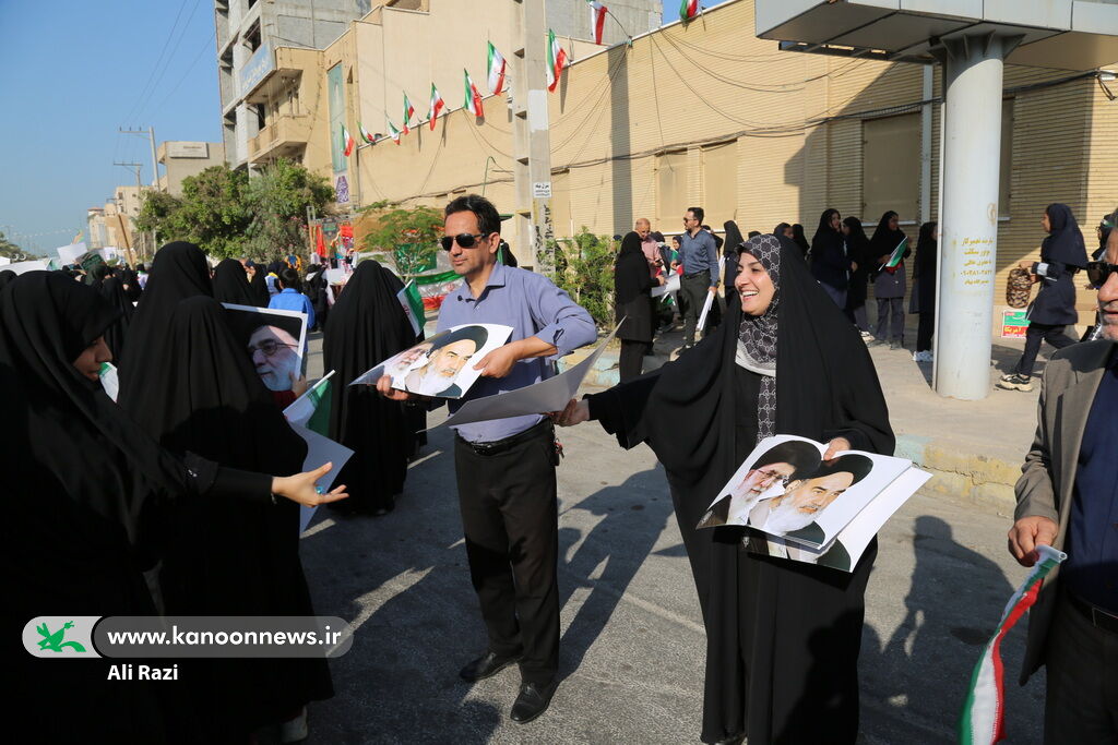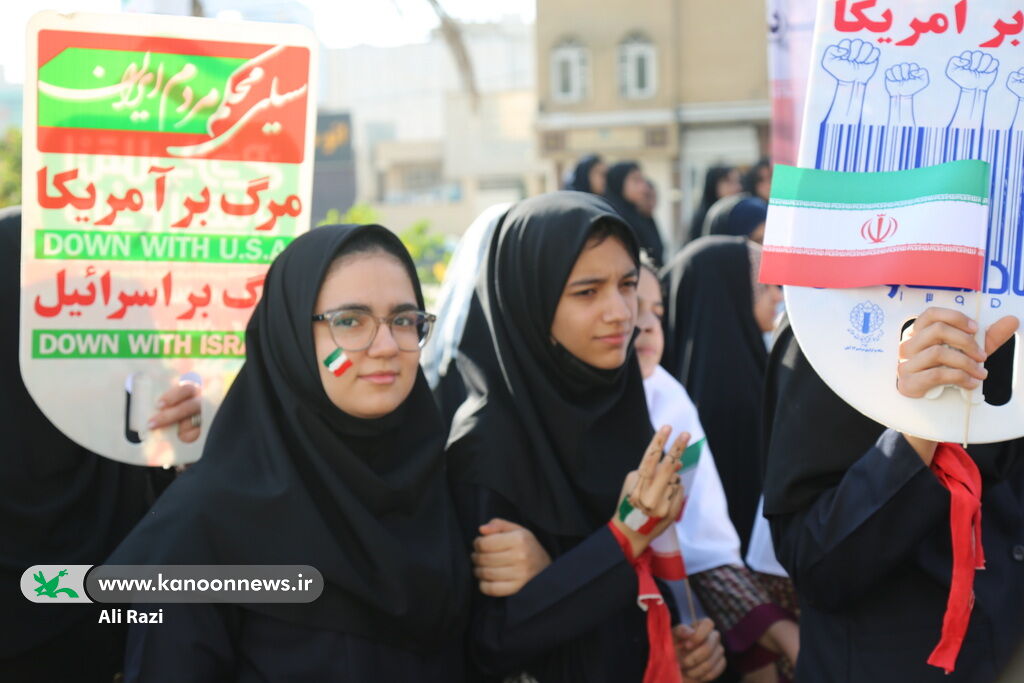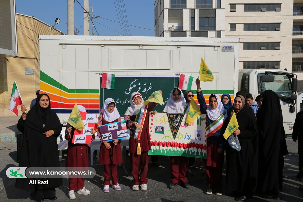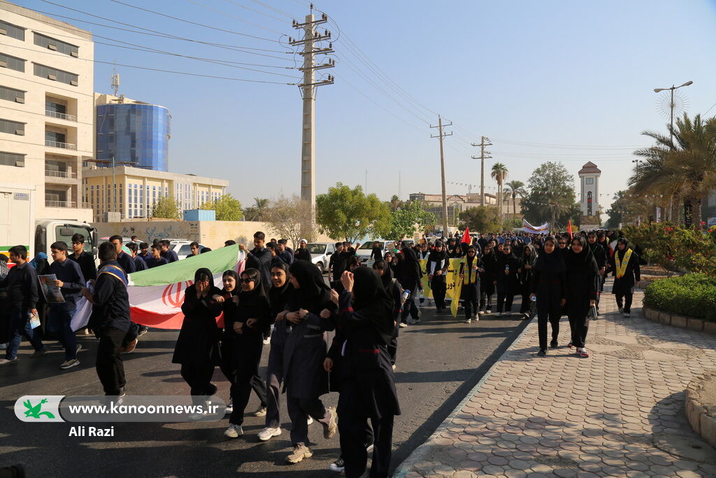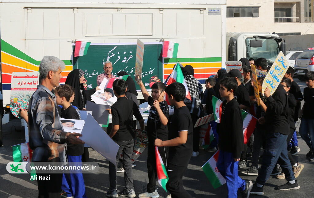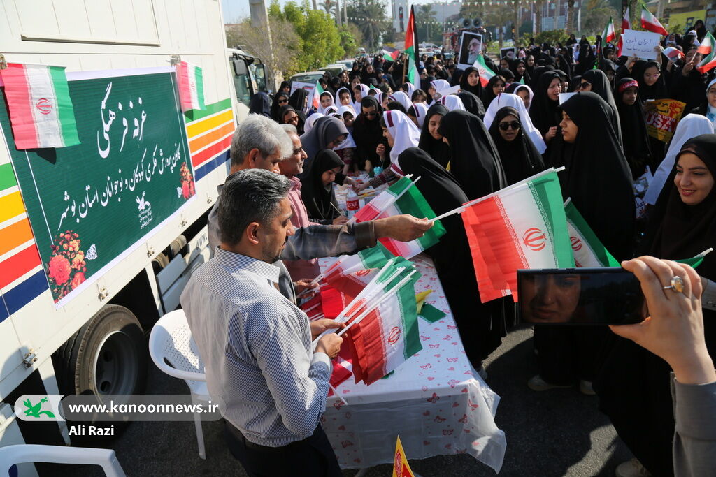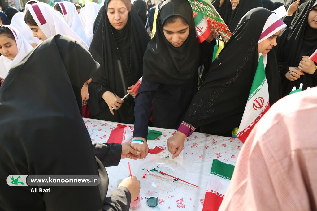 همزمان با فرارسیدن یومالله ۱۳ آبان، روز دانشآموز و روز مبارزه با استکبار جهانی، مربیان و کارکنان کانون پرورش فکری کودکان و نوجوانان استان بوشهر با برپایی غرفه فرهنگی و هنری در مسیر راهپیمایی، جلوهای از حضور پرشور و خلاقانهی را به نمایش گذاشتند.