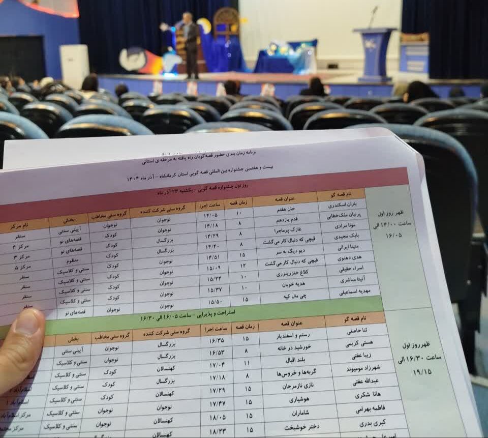 مرحله استانی بیستوهفتمین جشنواره بینالمللی قصهگویی کانون پرورش فکری کودکان و نوجوانان کرمانشاه، با رقابت بیش از ۱۰۰قصهگو از سراسر استان به مدت ۴روز از ۲۳ تا ۲۶ آذر ماه و با حضور داورانی بنام از ایلام، لرستان و کرمانشاه، در حال برگزاری است.