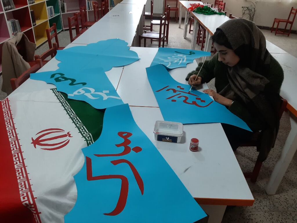مراکز فرهنگی- هنری کانون همدان در فجر مهدی با کمک اعضای خود به فضاسازی مراکز پرداخته و پرچم پر افتخار ایران را با هنر خلاقانه به تصویر کشیدند.