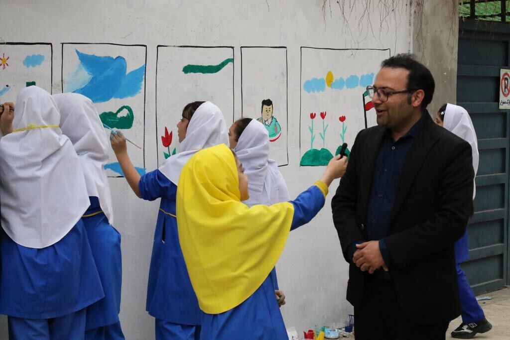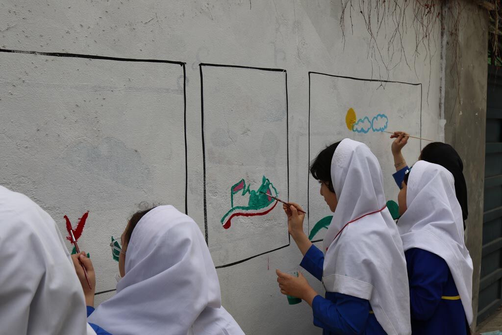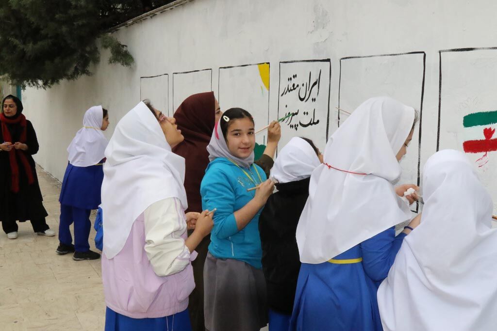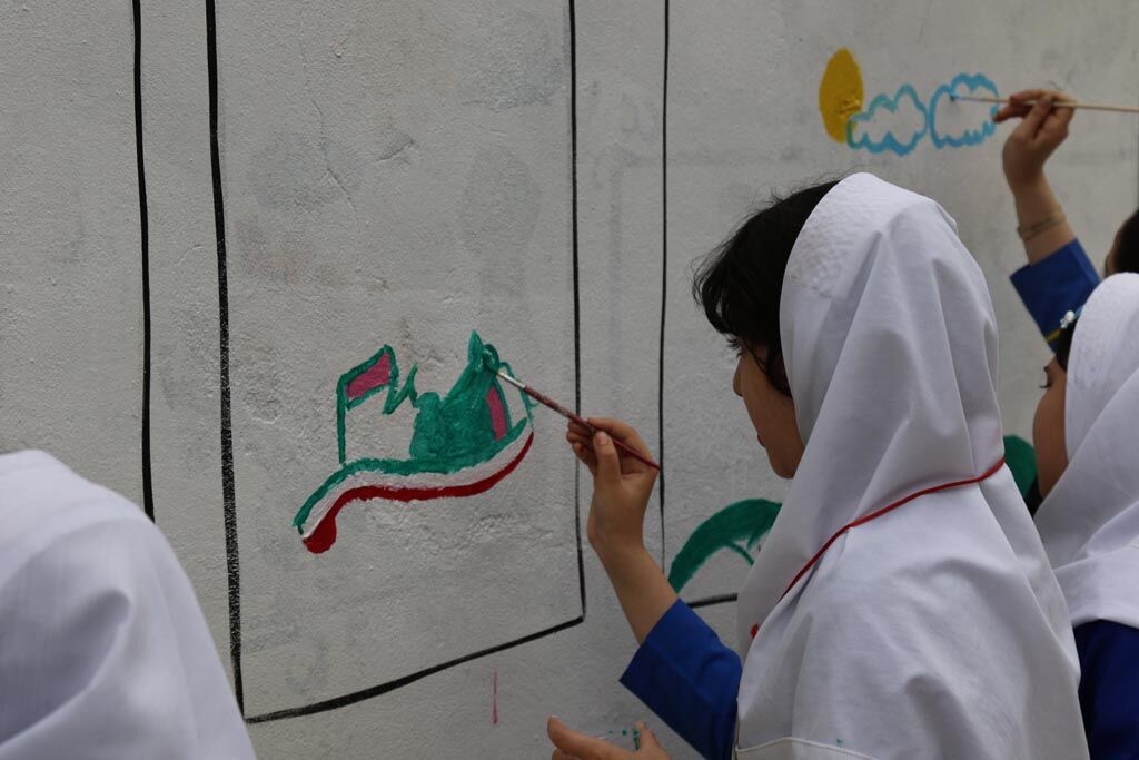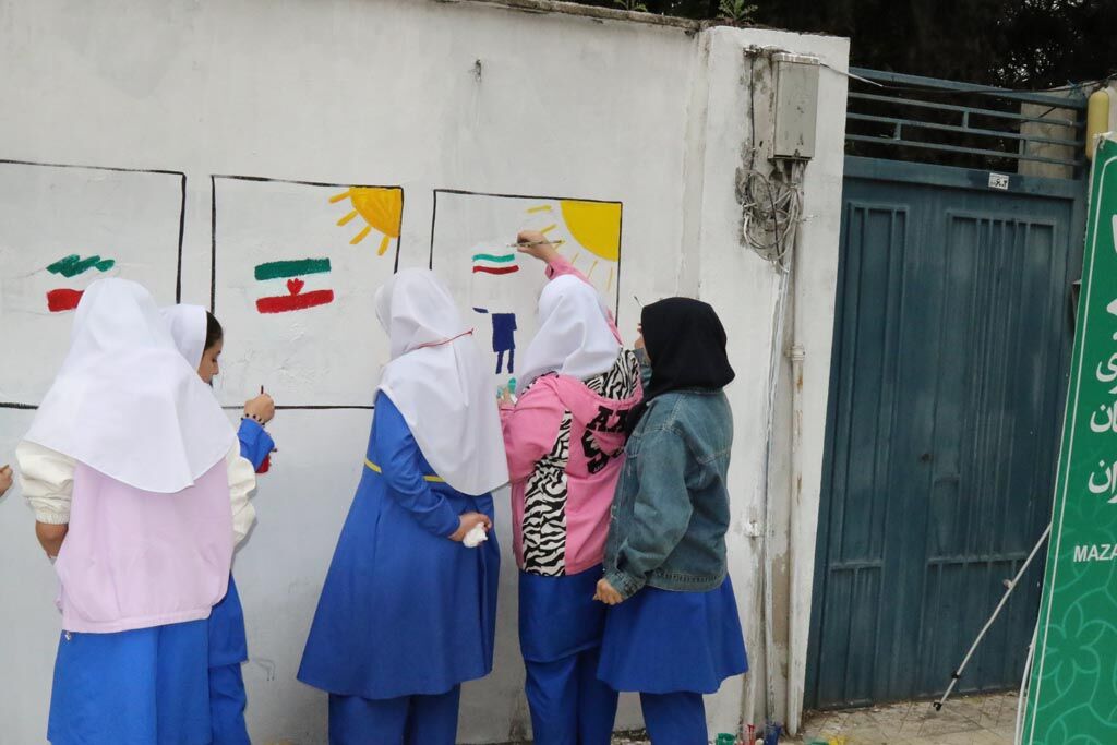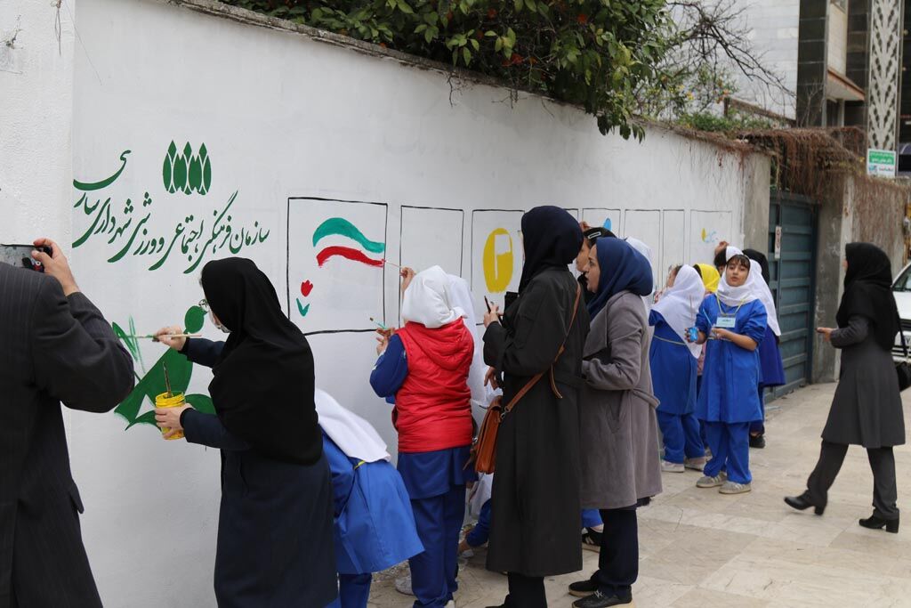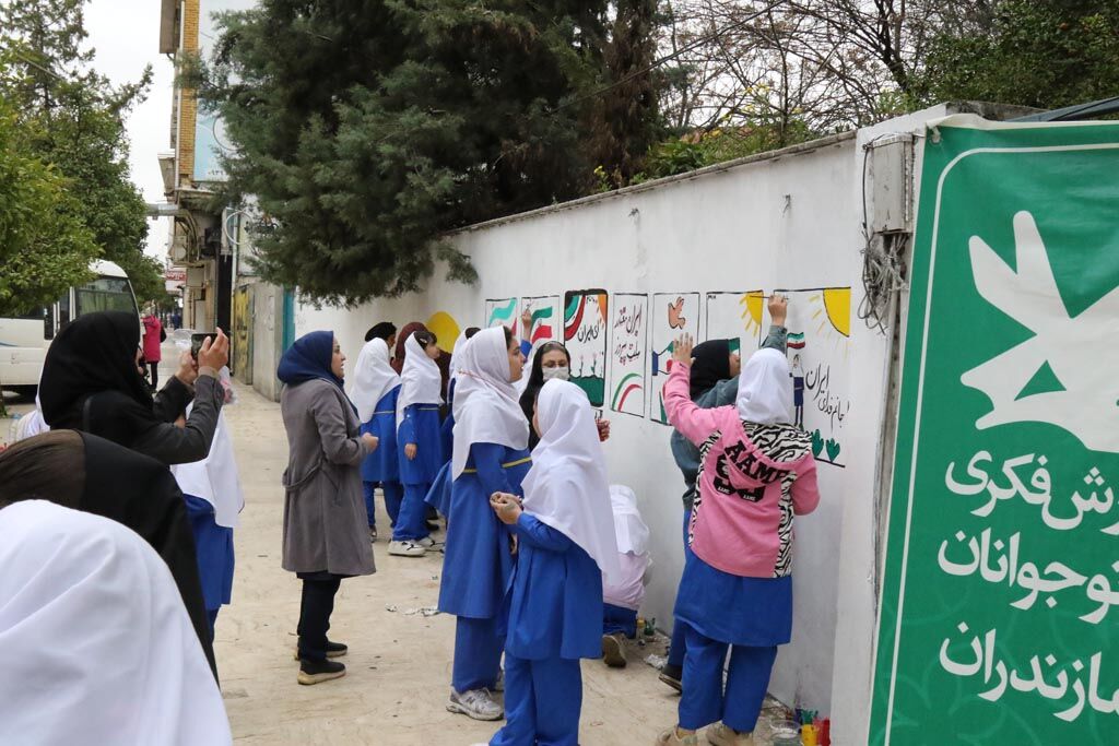 دیوارنگاره دهه فجر با مشارکت کودکان و نوجوانان در ساری اجرا شد