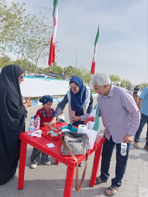با حضور مدیر کل، معاون،کارشناسان، مسئولین، مربیان کانون هرمزگان و 10 نفر از اعضا نوجوان منتخب مراکز بندرعباس، غرفه کانون پرورش فکری کودکان ونوجوانان هرمزگان در محل راهپیمایی 22 بهمن در کنار آبهای نیلگون خلیج فارس برپا شد. اجرای پویش عکاسی از راهپیمایی شکوهمند 22 بهمن، اهدای پرچم، اجرای نقاشی روی پارچه، معرفی شهدای جنگ 12 روزه با استفاده از گردونه، برگزاری کارگاه دلنوشته، معرفی شهدای کودک در جنگ 12 روزه، برگزاری برنامه محفل و... از مهمترین برنامه های اجرا شده توسط غرفه کانون پرورش فکری کودکان ونوجوانان هرمزگان بود.