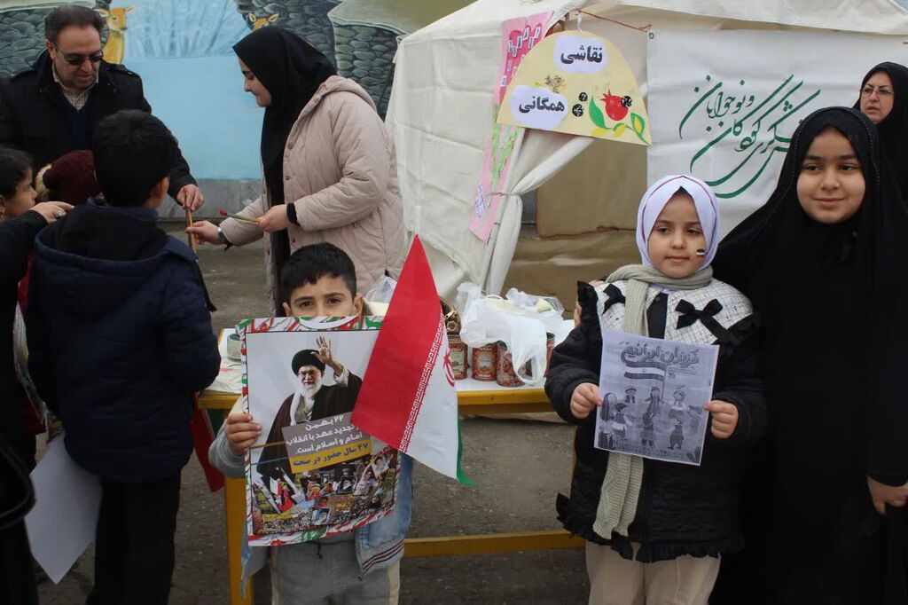 ایستگاه های فرهنگی هنری مراکز کانون پرورش فکری کودکان و نوجوانان شهرستان های استان آذربایجان غربی در مسیر راهپیمایی ۲۲ بهمن ۱۴۰۴