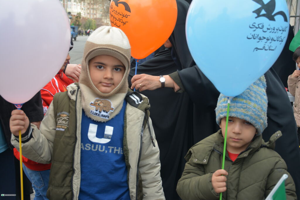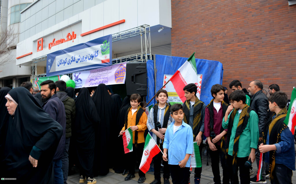 حضور پر شور کودکان و نوجوانان در کنار خانواده ها در جشن چهل و هفتمین سالگرد پیروزی انقلاب اسلامی ایران در غرفه کانون پرورش فکری کودکان و نوجوانان استان قم در مسیر راهپیمایی ۲۲ بهمن ۱۴۰۴